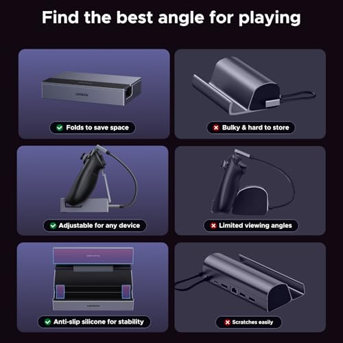 UGREEN Steam Deck Dock (6-in-1), 4K@120Hz HDMI, 100W PD, 1Gbps Ethernet, USB-A & C Ports, Adjustable & Foldable Aluminum Stand, Detachable USB-C Cable for Steam Deck (OLED), ROG Xbox Ally X, Legion Go