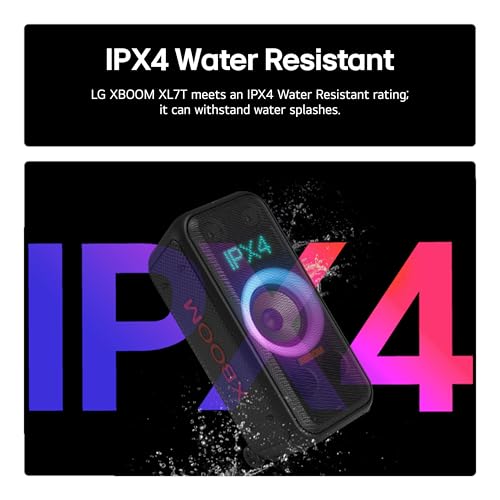 LG XBOOM DXL7T Bluetooth Speaker 250W, Portable Party Sound, Multi Colour Ring Lighting, Splashproof (IPX4), Up to 12 Hours of Playtime