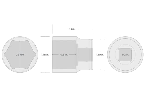 TEKTON 1/2 Inch Drive x 22 mm 6-Point Socket | SHD22122
