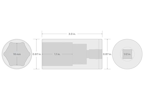 TEKTON 1/2 Inch Drive x 16 mm Deep 6-Point Socket | SHD23116
