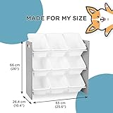 Humble Crew Wooden Toy Storage Organiser for Children & Toddlers, with 9 BPA Free Plastic Removeable Storage Bins, Ideal for Storing Toys, Games, Books and Craft Supplies - Grey/White