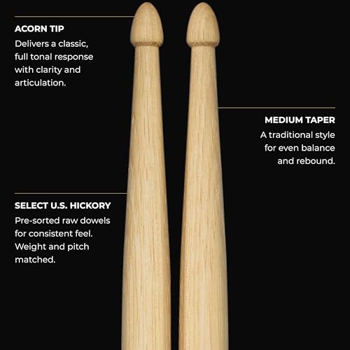 Meinl Stick & Brush Drumsticks, Standard Long 5B - American Hickory with Acorn Shape Wood Tip - MADE IN GERMANY (SB104)