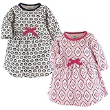 Touched by Nature Baby Girls' Organic Cotton Dress, Playwear, Trellis Long Sleeve 2 Pack, 12-18 Months (Pack of 2)