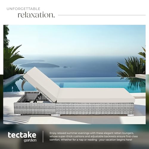 tectake® 3PC Rattan Sun Lounger with Aluminium Frame, Garden Furniture Set with 2 Loungers, Including Side Table, Cushions and 2 Cover Sets, 5-level Reclining Garden Chair - light grey