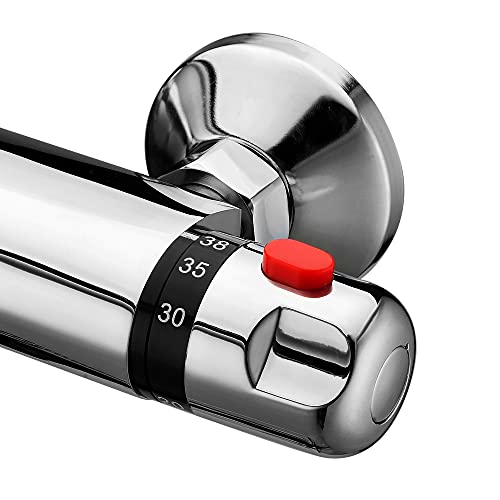 ENKI, Luna, BBT0171, Chrome, Thermostatic Bath Shower Mixer Valve, Wall Mounted, Solid Brass, Anti-Scald Device, Easy to Install Replacement Bath Shower Valve, 1-Year Guarantee