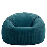 Adults Cord Bean Bag Chair, Luxury Extra Large Classic Dome Shape Beanbag, Teal