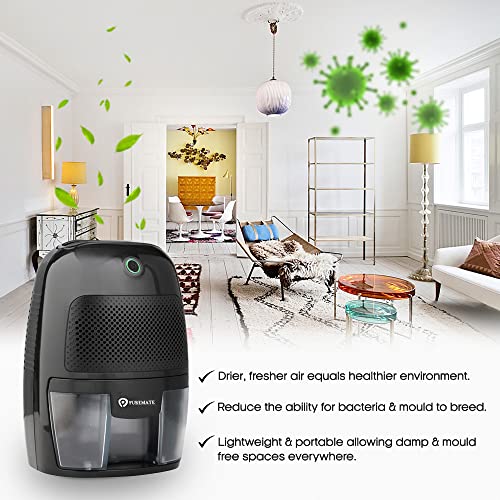 PureMate Dehumidifier 600ml Compact & Portable Mini Air Dehumidifier for Damp, Mould, Moisture in Home, Kitchen, Bedroom, Bathroom, Caravan, Garage Black 600ml