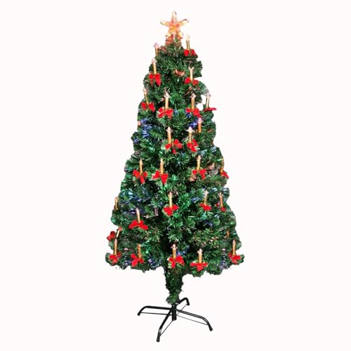 5Ft/150cm Fibre Optic Christmas Tree with Star Topper - Diamond LED Lights Decorations - Pre-Lit Green Artificial Xmas Tree - Multicolor Changing Lights