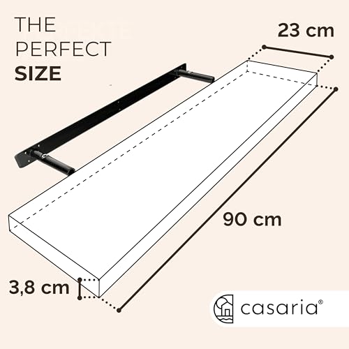 CASARIA® Floating Shelf 90cmx23cm Home and Kitchen Room Decor, Wall Shelving for Living Room, Office, Bathroom 38mm MDF with Hidden Wall Fixing, 15kg Floating Shelf Capacity | Gloss Black