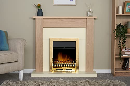 Adam Fires & Fireplaces Southwold Fireplace in Oak & Cream with Blenheim Electric Fire in Brass, 43 Inch in Metallic Gold Metallic Gold