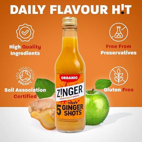 Zinger 5 Shot - Organic Ginger Shots (6x330ml) | 30 Servings | Refreshing Fiery Ginger Drink | Organic Ingredients, Vegan and Gluten Free | No Added Sugar