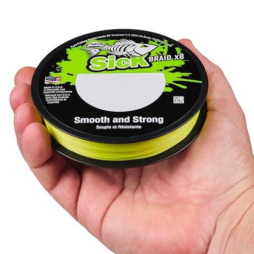 Berkley Sick Braid - 8 Strands Braided Fishing Line, Super Smooth 8 carrier Multifilament PE Braid Predator Fishing Lines 150/300m For Freshwater and Saltwater Sea Fishing, Unisex, Hi-Viz Yellow