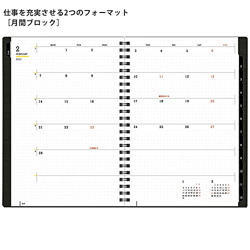 Maruman MNEMOSYNE Monthly Diary 2022 MND283-22 + Notepad N188A (5mm squared) with a stylish & durable Black PVC Cover, 1 ea (MNDP-22-05)