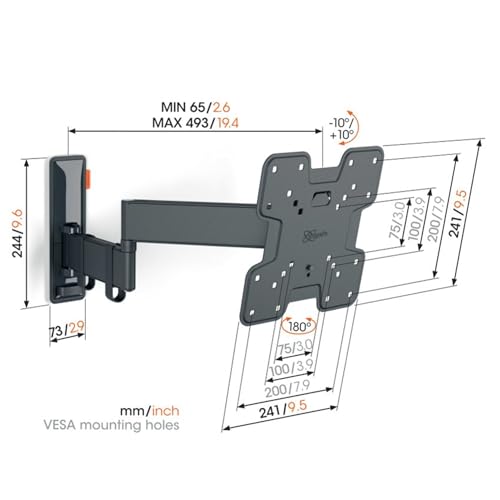 Vogel's TVM 3245 full-motion TV wall bracket for 19-43 inch TVs, Max. 33 lbs (15 kg), Swivels up to 180º, Full-Motion TV wall mount, Max. VESA 200x200, Universal compatibility