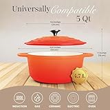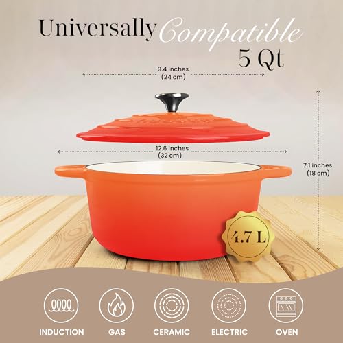 Nuovva Enamelled Cast Iron Dutch Oven Pot with Lid – 5 5 Quart - Deep, Orange