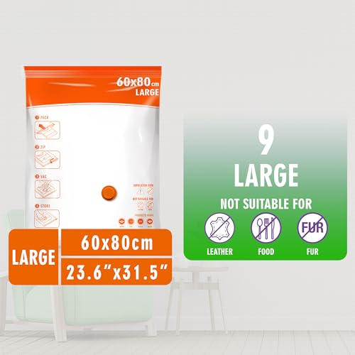 STORAGE MASTER Space Saver Bags for Travel and Home Reusable Vacuum Storage Bags Save 80% More Storage Space Work with Vacuum Cleaner (9 Large, No Pump Included)