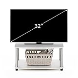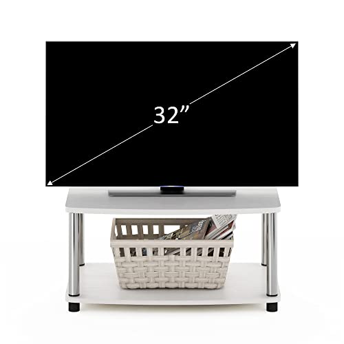Furinno TURN-N-TUBE TV Riser Stand, 2-Tier Small Elevated No Tools TV Stand, TV Console for TV up to 32 inch, 15.8 x 23.8 x 11, for Living Room, Bedroom, White Oak/Stainless Steel Tubes