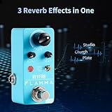 FLAMMA FC02 Mini Reverb Digital Guitar Pedal with 3 Reverb Church and True Bypass Pedal, Effects, Plate, Studio,