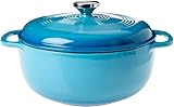 Lodge 6 Quart Enameled Cast Iron Dutch Oven with Lid – Dual Handles – Oven Safe up to 500° F or on Stovetop - Use to Marinate, Cook, Bake, Refrigerate and Serve – Cornflower Blue