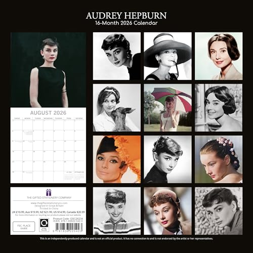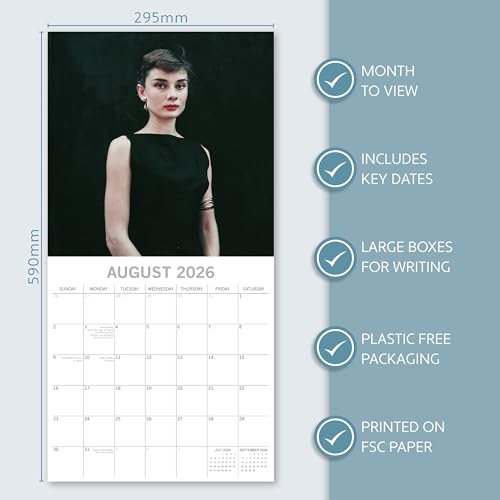 TGSC | Audrey Hepburn 2026 Calendar 16 Month Family Square Wall 2026 UK | Planner with Large Grid for Home or Office Organisation - Celebrity Icons 2025/2026 UK