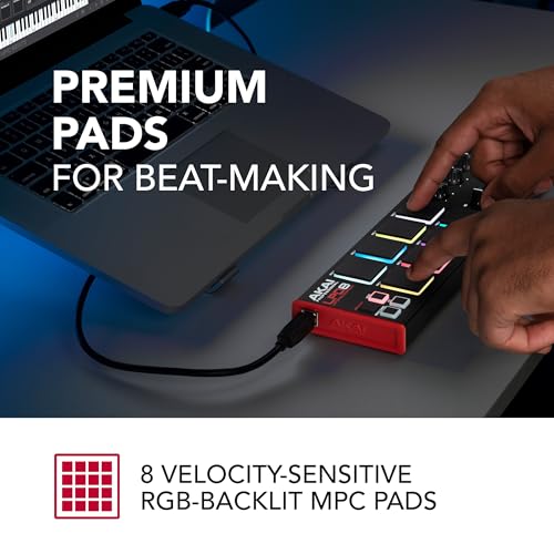 Akai Professional LPD8 - USB MIDI Controller with 8 Responsive MPC Drum Pads for Mac and PC, 8 Assignable Knobs and Music Production Software