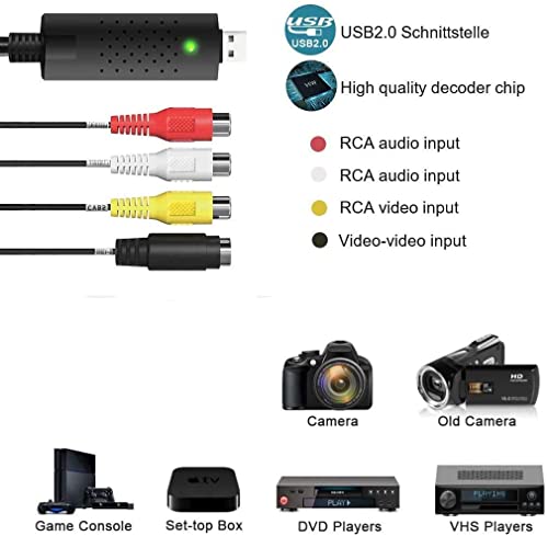 Mokeum Audio Video Grabber USB 2.0, Plug & Play Audio Video Converter, Video Adapter for Editing, Hi8 VHS to DVD, Digitize for Mac and Windows 10 with Scart/AV Converter Adapter