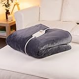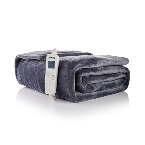 Minky Luxury Heated Throw Blanket - Double, 180cm x 135cm, in Grey - Luxury Fleece Blankets, 10 Heat Settings, Electric Throw, Machine Washable, Cosy Heated Blanket, Electric Blanket