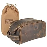 Genuine Leather Toiletry Bag For Men Women Dopp Kit Shaving Case - Large Size