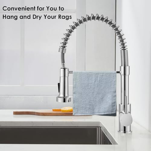Peppermint Commercial Kitchen Tap with Pull Down Sprayer, Chrome Spring Kitchen Sink Mixer Taps with 360° Swivel, Ideal for Double Sinks & Washing Large Pots, Standard UK Fitting (1 Hole)