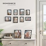 SONGMICS Picture Frames with 16 Mats, Set of 10, Photo Frames with Two 8x10, Four 5x7, Four 4x6 Frames, Hanging or Tabletop Display, MDF and Glass, 12 Non-Trace Nails, Ash Black RPF049B01