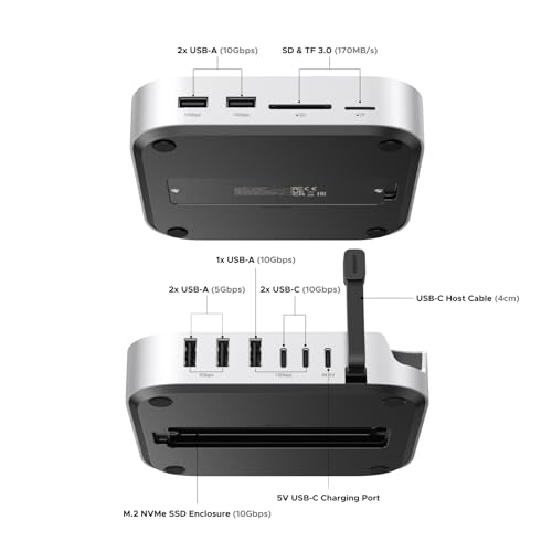 UGREEN Mac Mini M4 Dock with 10Gbps NVMe SSD Enclosure (Up to 8TB), USB C Hub with with 3x USB-A 10Gbps, 2x USB-A 3.0, 2x USB-C 10Gbps, 170MB/s SD/TF, Dock & Stand for Mac Mini M4/M4 Pro