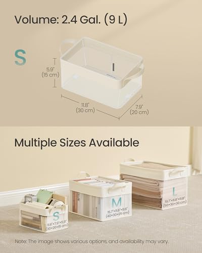 SONGMICS Storage Bins Set of 3, Small Fabric Storage Baskets, Foldable Organiser with Transparent Nylon Mesh, 30 x 20 x 15 cm, Handles, for Bathroom, Kitchen, Cream White RFB915W01