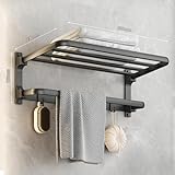 Towel Rack with Towel Bar Holder Towel Rail with 5 Hooks Foldable Towel Shelf...