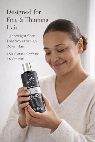 Thinning & Fine Hair - 1.5% Biotin & Caffeine Shampoo and Conditioner Set with Overnight Treatment Serum – With Argan Oil & Rosemary – 600ml By GRD Hair