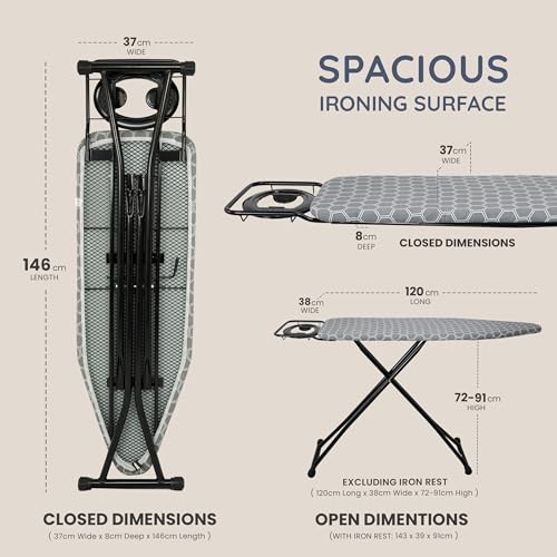 CUQOO Folding Ironing Board – 122x38cm Adjustable Height 74-91cm Durable with...