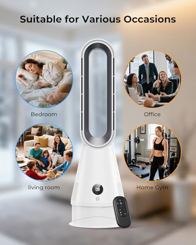 AICPAN Hot and Cool Bladeless Tower Fan, Space Heater with 3 Modes, Powerful Coo