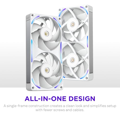 NZXT F240X Performance Single-Frame Fan - 2x 120mm PWM RGB PC Case Fans - Max Airflow & Static Pressure - Low Noise - LCP Frame & Blades - Magnetic Fluid Dynamic Bearing - 30mm Thick - White