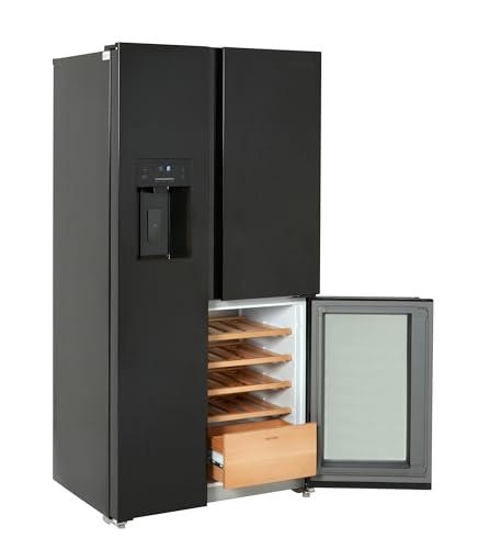 TESLA T Door Fridge Freezer with Wine Cooler (Plumbed)– 305L Fridge / 165L Freezer Capacity, Freestanding Black Glass, E Energy, Total No Frost, Multi Airflow & Wine Cooler Zone (T530TDBG)