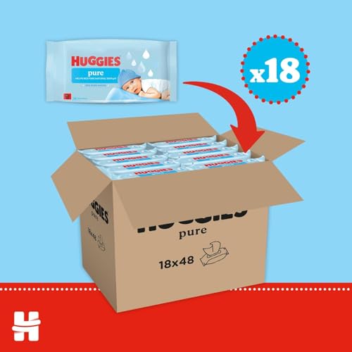Huggies Pure Plastic Free Baby Wipes - Pack of 18 (864 Wipes) - 99% Water Wet Wipes, Fragrance Free, Hypoallergenic, Better Cleaning, Soft and Gentle on Babies' Delicate Skin