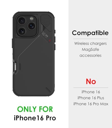 Aulumu A16 Shockproof iPhone 16 Pro Case | Updated Camera Control | Real Cooling | Aluminum Alloy Camera Frame | Multi-Layer Composite Protection - Black