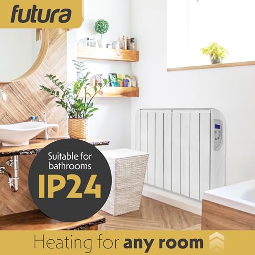 Futura 2000W White Electric Radiator Heaters for Home, Bathroom Safe 24/7 Day Timer Electric Heater Lot 20 & Advanced Thermostat Control Wall Mounted Low Energy Panel Heater with Child Lock