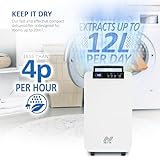 NETTA 12L/Day Low Energy Dehumidifier - Digital Control Panel, Air Filter, Continuous Drainage, Auto Restart, Timer, 1.5L Water Tank - For Home & Office, Damp Mould Control, Laundry Cloth Drying