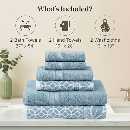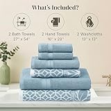 Modern Threads Trefoil Filigree 6-Piece Reversible Yarn Dyed Jacquard Towel Set - Bath Towels, Hand Towels, & Washcloths - Super Absorbent & Quick Dry - 100% Combed Cotton, Sterling Blue