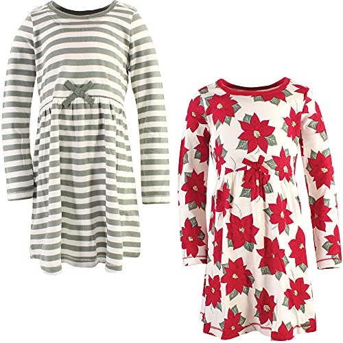 Touched by Nature Baby Girls' Organic Cotton Dress, Playwear, Red Poppy Short Sleeve 2 Pack, 0-3 Months (Pack of 2)