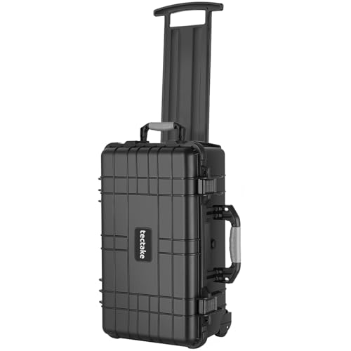 tectake® Camera Case - Shock-Resistant, Dust- & Waterproof Box with Wheels & Telescopic Handle, Incl. Cube Foam Inlays - 34.5 x 23 x 56 cm Hard Case with Snap Closures & Seal Ring - Black