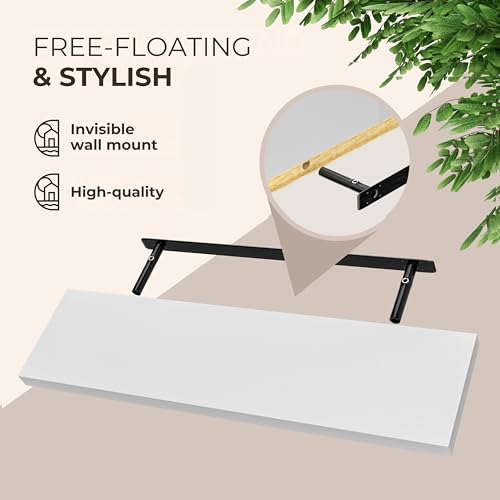 CASARIA® Matt White Floating Shelf Including Bracket | Wall Shelving Living Room Kitchen Bedroom Office | 38mm Thick | Hidden Wall Fixing | 15kg Capacity | MDF | 90 x 23cm