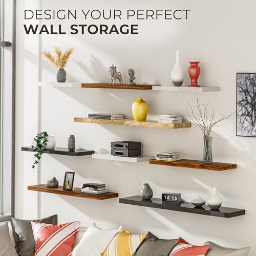 Casaria - Floating Shelves Including Bracket Wall Shelving Living Room Kitchen Bedroom Office 38mm Thick Hidden Wall Fixing 15kg Capacity mdf 90cm
