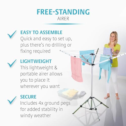 Coopers of Stortford Freestanding Airer Push Button Open/Close Washing Line Ground Pegs H138 x W102cm