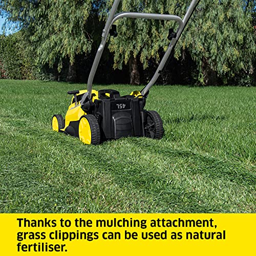 Kärcher 18v Lawn Mower LMO 18-36 Battery Set, Incl. 18v Battery and Fast Charger, Performance: 350m², Cutting Width: 36cm, Adjustable Cutting Height: 30-70mm, Mulching Plug, 45L Catcher Box