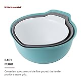 KitchenAid Universal Nesting Plastic Mixing Bowls, Set of 3, 2.5 Quart, 3.5 Quart, 4.5 Quart, Non Slip Base with Easy Pour Spout to Reduce Mess, Dishwasher Safe, Aqua Sky, White, Gray